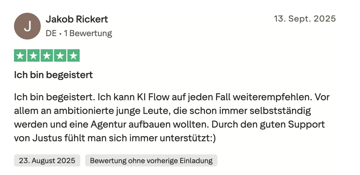 "Ich habe im Juni an 6 Kunden die KI-Agenten verkauft & damit 36.257€ gemacht – die KI-Dienstleistung war genau das, was meine Agentur gebraucht hat!"
